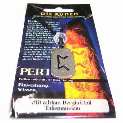 Runa PERTHO simbolizeaza succesul si reusita. Veti putea trece peste toate obstacolele din cale. Daca aveti in jur persoane cu resentimente, aceasta runa le va respinge si va va proteja de magie, farmece, deochi. Ajuta la intelegerea personalitatii interioare si la dezvoltarea capacitatii de prezicere a viitorului. Cristalul de stanca, in aceasta combinatie, atrage castiguri neasteptate si surprize placute. Dimensiune: aprox. 3 x 2 x 0,4 cm