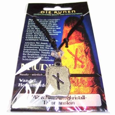 Runa NAUDIZ, pe siret negru cerat, de lungime reglabila, ajuta purtatorul la depasirea unui moment de criza, a unei pierderi dureroase. Este un talisman bun pentru oamenii care sunt foarte stresati, intrucat ajuta la reezolvarea problemelor Cristalul de stanca, in aceasta combinatie, ajuta la eliberarea de ganduri negative si depresive. Dimensiune: aprox. 3 x 2 x 0,4 cm