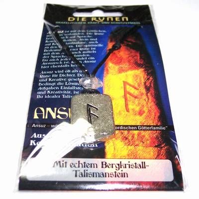 Runa ANSUZ potenteaza creativitatea, simtul artistic, intuitia, sensibilitatea si eficientizeaza procesul de comunicare. Simbolizeaza ajutor neasteptat de la persoane necunoscute, gasirea unei sume de bani, a unui guru sau a unui drum initiatic. Mai poate simboliza reusita la un interviu sau la un examen. Cristalul de stanca, in aceasta combinatie, simbolizeaza gasirea unui mentor sau a unei persoane initiatice. Dimensiune: aprox. 3 x 2 x 0,4 cm
