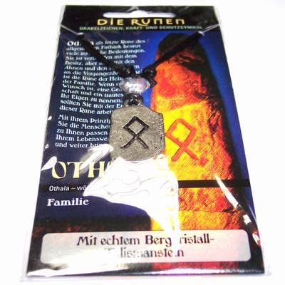 Runa OTHALA, pe siret negru cerat, de lungime reglabila, simbolizeaza averea imobiliara. Se recomanda purtarea acestui talisman de catre persoanele care doresc achizitionarea unei case sau a unui teren. Mareste averea si intareste linistea emotionala. Cristalul de stanca, in aceasta combinatie, simbolizeaza bani sub forma de mostenire, donatii sau alte acte legale. Dimensiune: aprox. 3 x 2 x 0,4 cm
