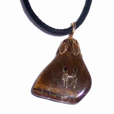 Panandativ din ochi de tigru, pe siret negru cu inchizatoare metalica - un talisman de protectie pentru cei nascuti sub zodia Gemenilor.